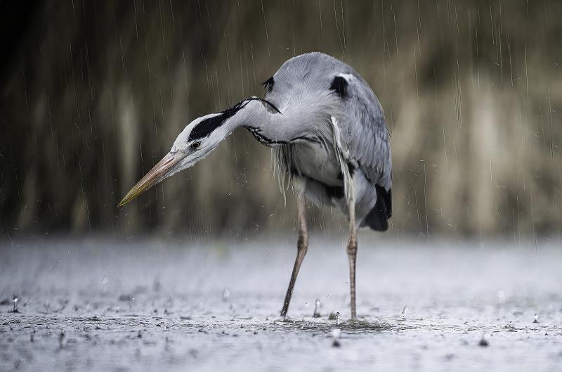 Heron in rain storm